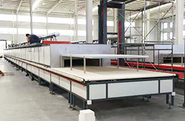 辊道窑图片如下:又称为无拱窑是一种截面呈狭长形的隧道窑,与窑车隧道窑不同,它不是用装载制品的窑车运转,所以窑顶结构为平吊...